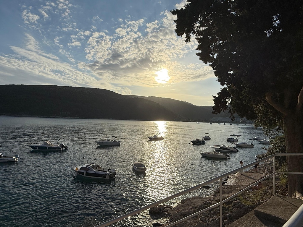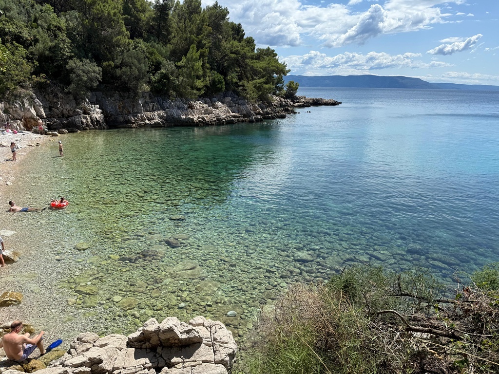 Rabac lag direkt unter uns. Nur ein paar Minuten mit dem Auto entfernt. Rabac ist ein touristischer, aber schöner Badeort an Istriens Ostküste. Der Fels- und Kieselstrand mit seinem klaren Wasser ist perfekt zum Schwimmen, Schnorcheln oder zum Entspannen. Die Uferpromenade lädt zum Bummeln ein, gesäumt von Eisdielen, Cafés und kleinen Läden. Wer eher die Ruhe sucht, kann mit dem Auto ein Stück weiter an der Küste entlangfahren, und findet dort versteckt, eine kleine Bucht. Mein erstes Highlight dieses Urlaubs. Wunderschönes Wasser, weniger Menschen und umgeben von Wäldern lässt es sich hier lange aushalten.